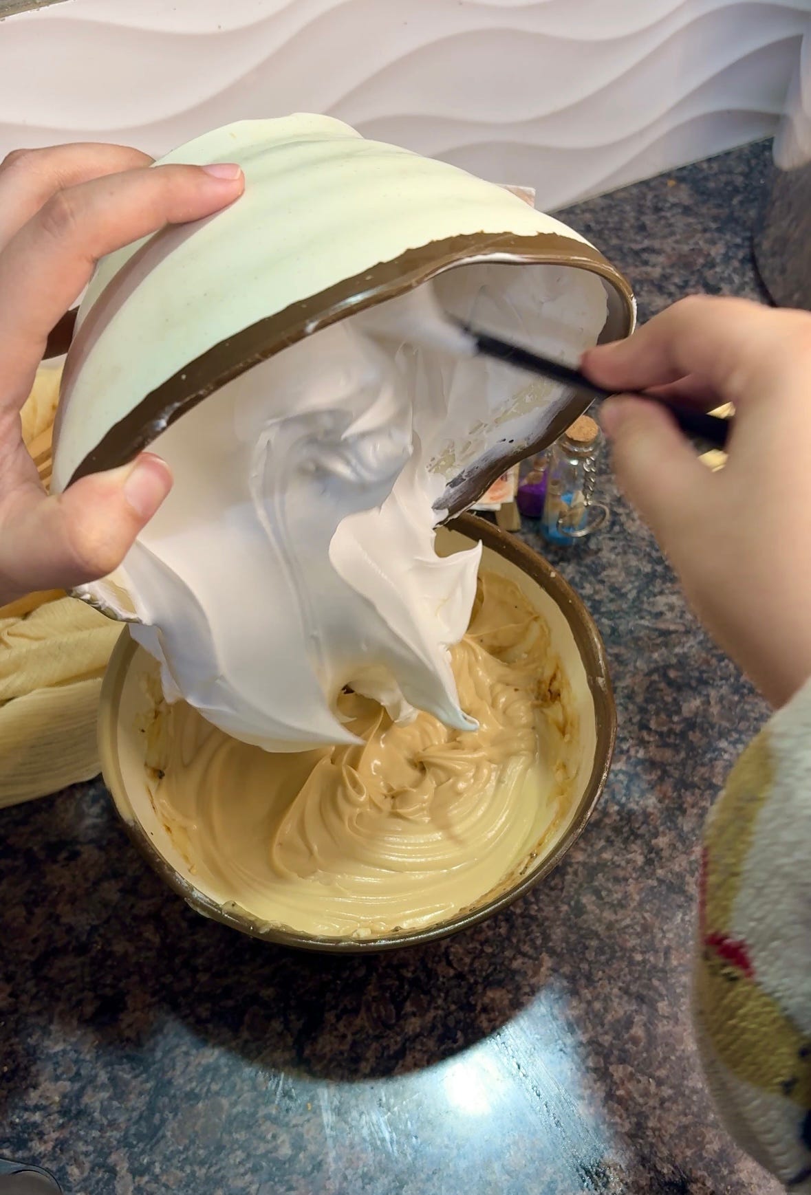 Now add the whipped heavy cream to this and fold GENTLY. Don't overmix it, it will deflate.