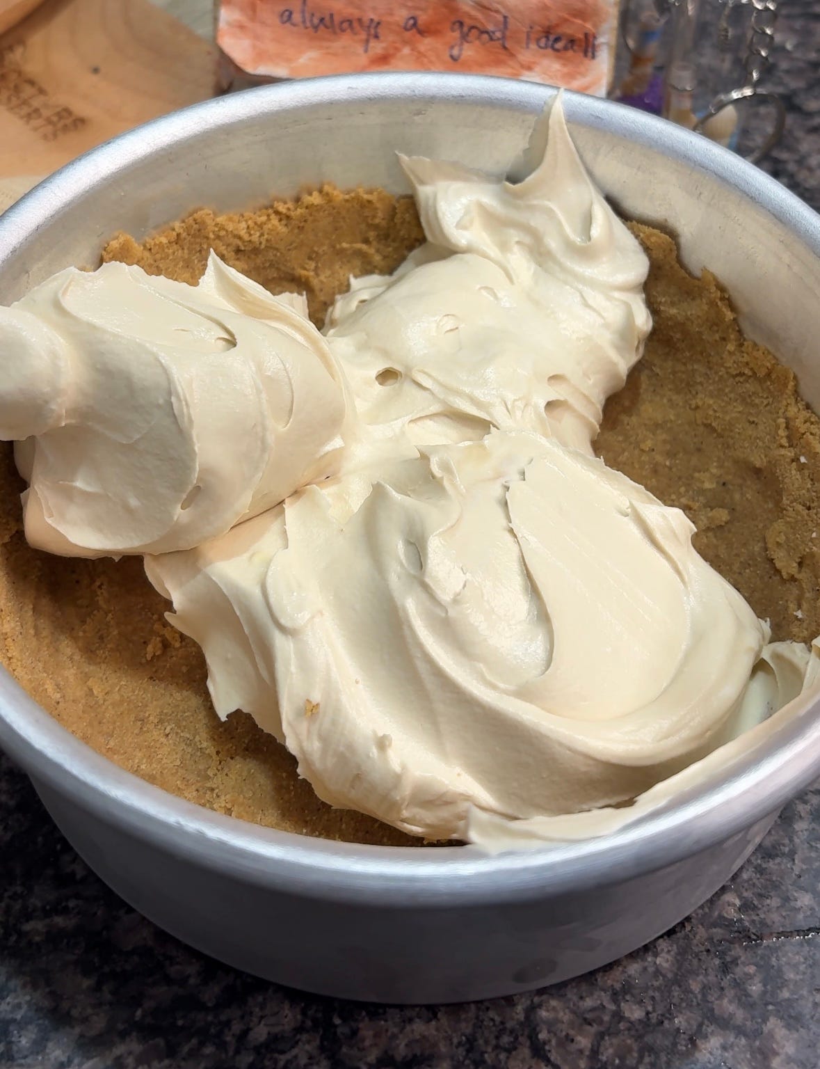 level the cheesecake at the top so it looks pretty good and let it chill.