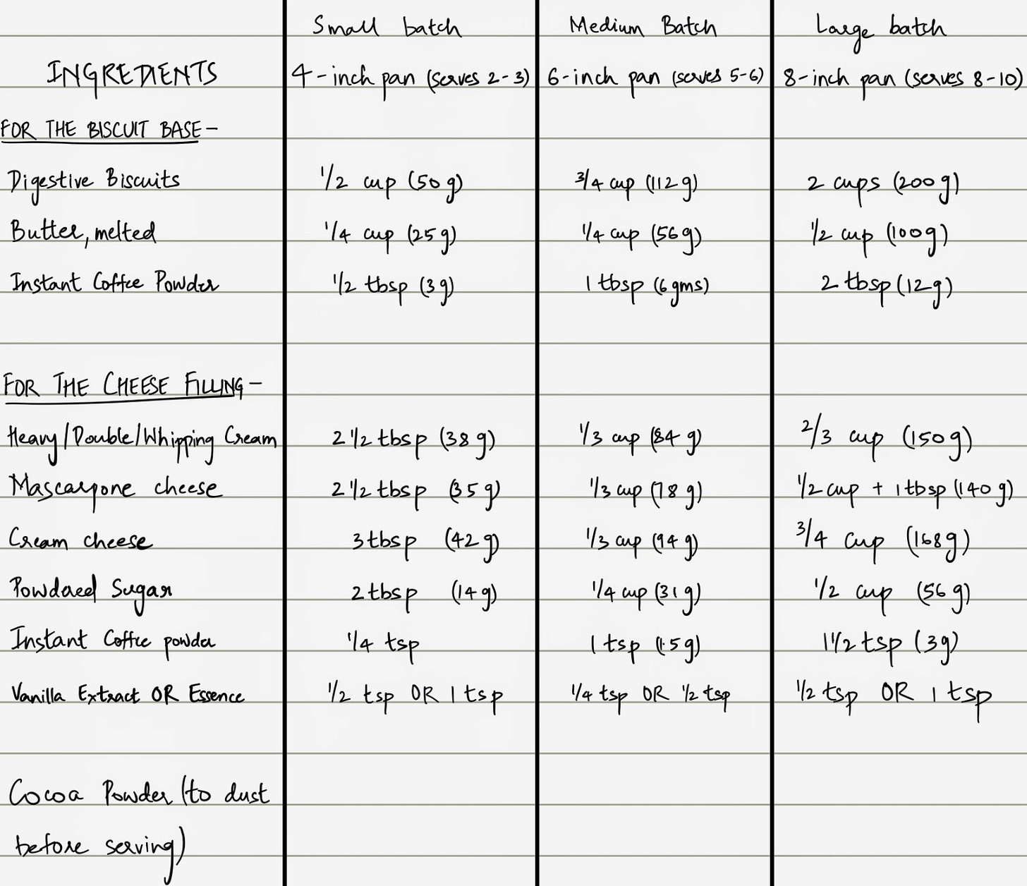 The ingredients are for different batch sizes: small-medium-large. You choose whichever size cheesecake you want to make and use the measurements accordingly!